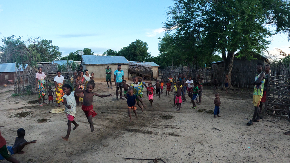 As sunset grew closer, a few of us wandered over to a nearby village where people were selling baobab seeds and seedlings. Of course, we can’t bring home seeds when we travel, so we were unable to buy anything, but a bunch of kids from the village came out and started dancing when they saw us. This gave David an idea to start a game. The next thing we knew, all of the kids had joined in, and everyone was trying to jump as far as they could across a pair of lines that David had drawn in the sand. After everyone had jumped, he would expand the lines to make the jump more difficult.