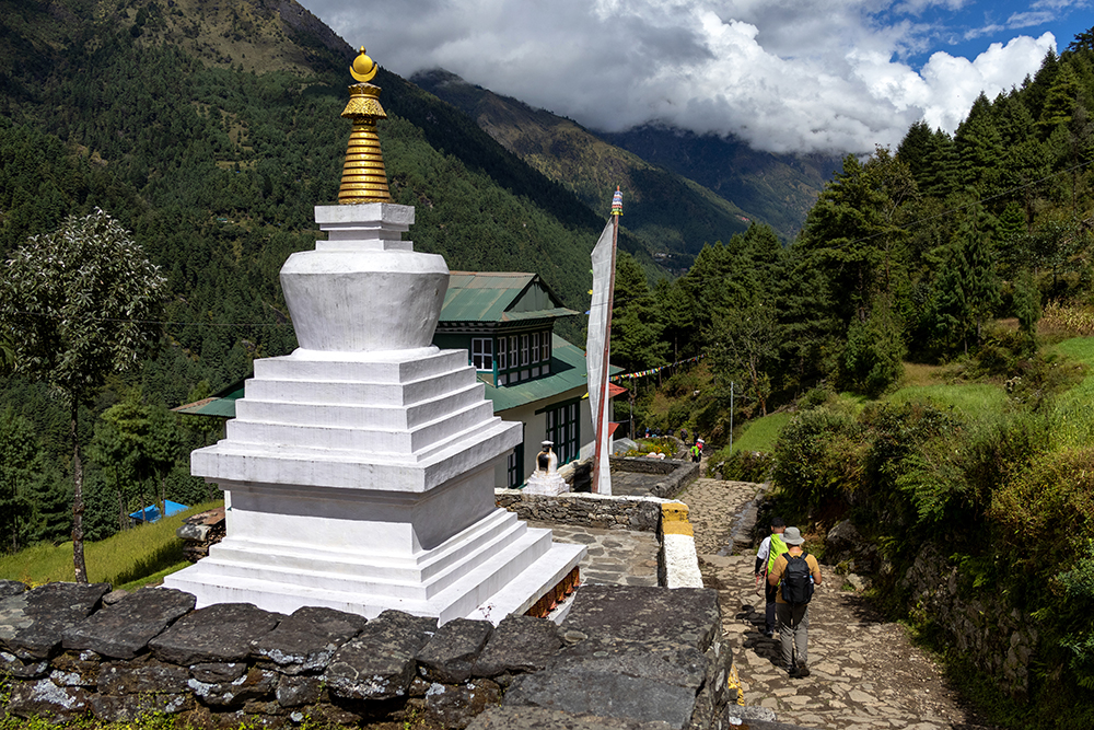 With the team finally complete, we paid for our drinks, set off on the trail, stopping to take on the sights until we crossed under the Pasang Lhamu memorial gate and exited the village.