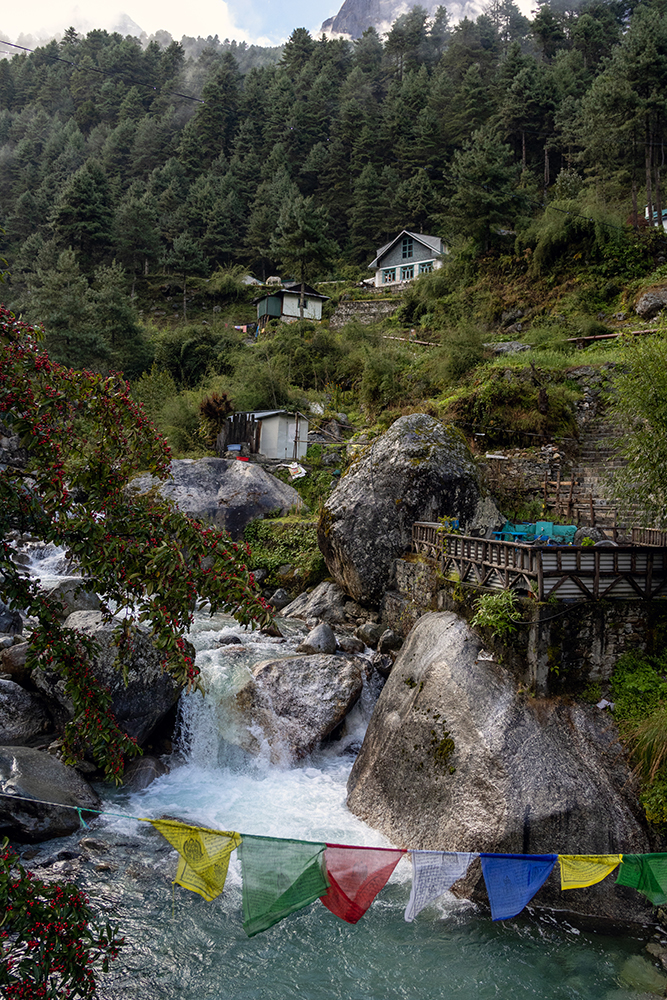 When I remarked that I liked the shirt, PG laughed and sang a little tune of, “Dhal Bhat power 24 hour, no shower, smell like a flower.” Surely a portent of things to come as we ascended higher into the Khumbu Valley.