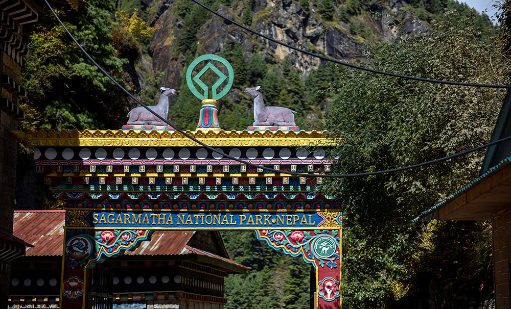 By midday, we found ourselves at the grand entrance gate to Sagarmatha National Park. Sagarmatha is the Nepali name for Mount Everest, while the Sherpa/Tibetan name for the mountain is Chomolungma, which means “Goddess Mother of the World.” Passing under the ornate gate, I felt a rush of exhilaration. It felt like we were one step closer to our goal, and now we were officially in territory that I had read about and imagined since I was a little girl.
