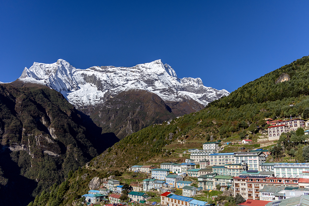 The first thing on my mind when I woke up in Namche Bazaar was the view. Clouds had already settled over the surrounding mountains by the time we arrived in the Khumbu Region’s most important trading hub the previous afternoon. Now I wanted to see what Namche looked like in the brilliant sunlight that was shining through the window of me and Vince’s room. So after breakfast, Vince and I spent a few minutes on our tea house’s rooftop terrace.
