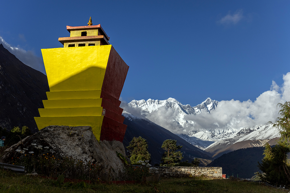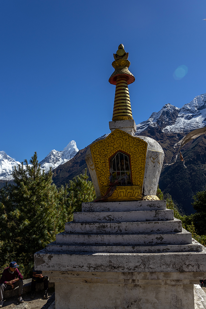 The shorter trees also meant that we had more consistent views of the mountains for this portion of the day. Ama Dablam and Lhotse were particularly visible, and every once in a while, we would round a bend to see that there was a beautiful Stupa up ahead, silhouetted against the high peaks.