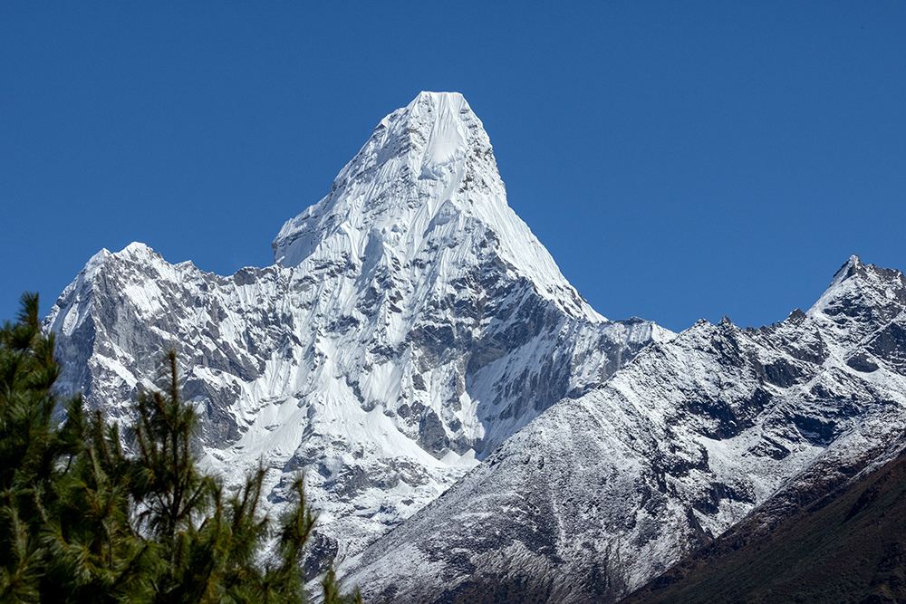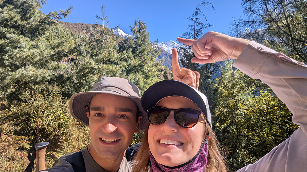 The mountains felt more immediate than they had on our first two days of trekking. They’d seemed so far away before, but now they loomed over us, and before long, PG (our guide from iTrekEVEREST) stopped us and pointed at a snowy ridge far off in the distance. From our vantage, we could see the picturesque, swooping slope of Ama Dablam, the jagged summit of Lhotse, and behind the ridge rose the imposing figure of Mount Everest, the mother of all mountains.