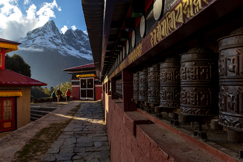 We waited for a yak train to cross the suspension bridge that spanned the river, and then took out turn. We stopped for lunch on the other side before undertaking the climb up to Tengboche. From here on out, it was just a long, uphill slog. We kept putting one foot in front of the other, stopping to drink water every 100 meters of elevation gain. The day continued like this until we suddenly ran out of hill. We’d finally arrived at Tengboche, and we entered the village through a gate lined with small Prayer Wheels.