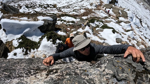 A hundred and fifty meters from the top, Mahesh turned around and shook his head. That was all the convincing I needed to call it and go back down. Vince was the only one dead-set on summiting. So after a brief deliberation (in which I tried to talk him out of going on alone), six of us began our descent, while Vince pressed on by himself.