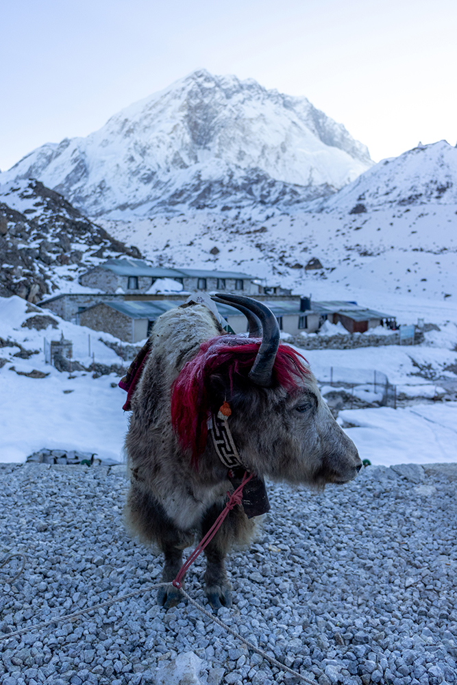 The last thing I wanted to do at 4:30 in the morning was unzip my sleeping bag and face the brutal pre-dawn cold of Lobuche village. Here at 16,207 feet (4,940 meters), the basic tasks of every day life had become harrowing accomplishments. Open the sleeping bag and brace for the penetrating cold. Peel off my pajamas and replace them with layers of trekking clothes. Walk down the hall to use the toilet and brush my teeth. Eat more than three bites of breakfast. Each mundane task took every ounce of willpower I possessed.