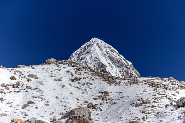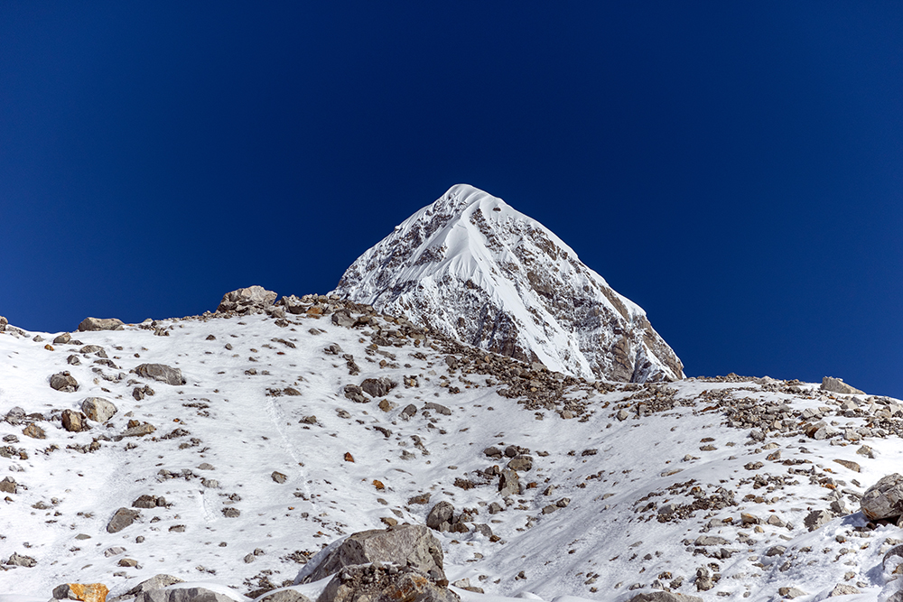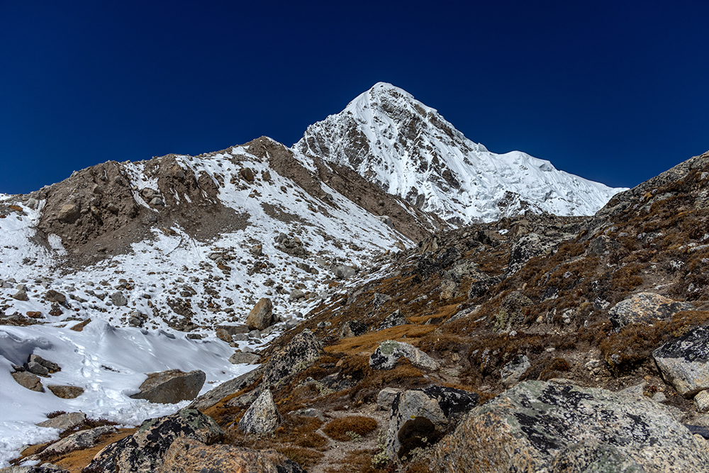 We set out from our teahouse in Lobuche around sunrise. The trail was a thin line through the snow, which had been cut by the guides, porters, and trekkers who went before us over the course of the previous week. A matter of days earlier, people had been hard at work breaking this trail, an effort that I can’t begin to fathom undertaking now that I know what 16,000 feet in the sky actually feels like.