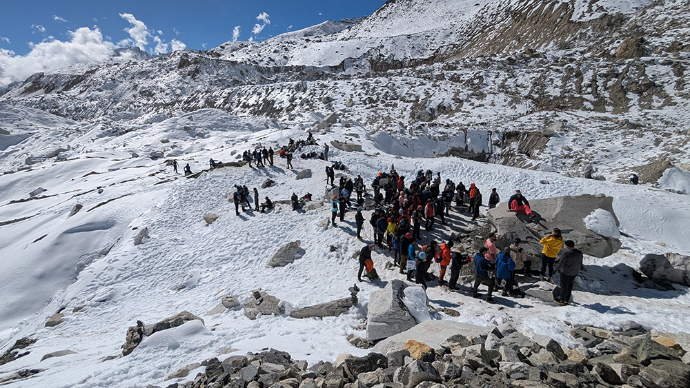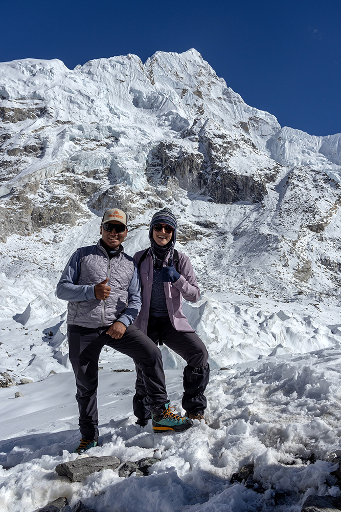 The group’s spirits were high as we inched alongside the glacier, getting ever closer to Base Camp. Every rest stop was filled with our team’s typical banter and laughter, but at one particular stop, PG grew serious when I jokingly asked him if he thought we would make it.