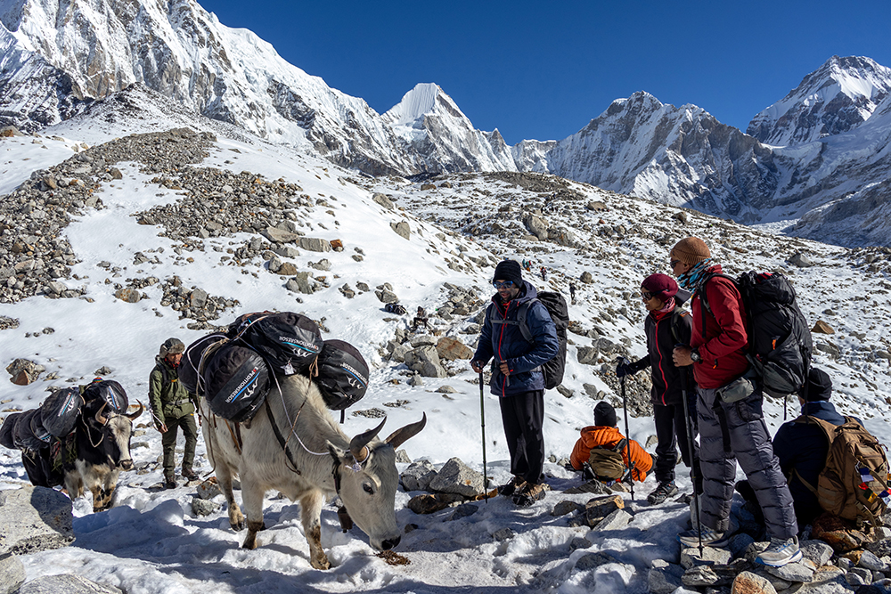 As I stood there, yaks plodding along past me, I took the opportunity to appreciate the blindingly snowy glacier below me. Strangely enough, the busy scene reminded me of Renaissance art. In the foreground, trekkers, porters and yaks mingled together in a striking pastiche where everyone was dressed in contemporary clothing, yet still transporting goods (and themselves) by foot. In the background was a glowing landscape of ice, so pristine that it should have been a painting instead of real life.