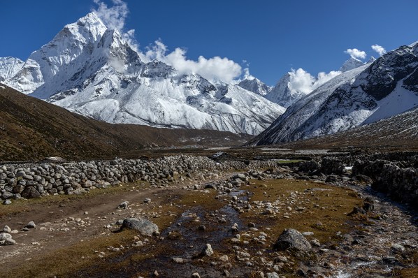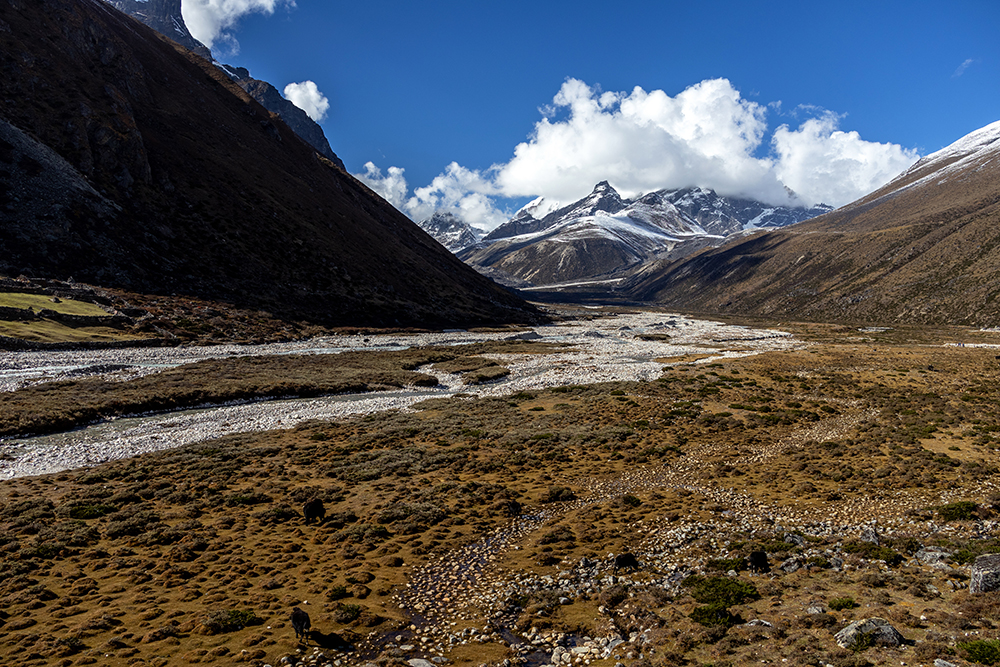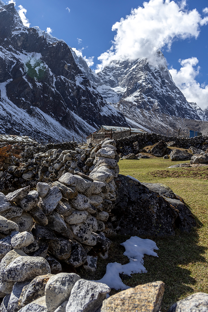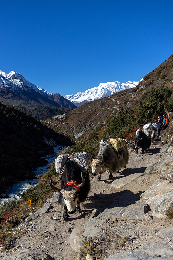 After lunch, we took a lower trail through the Pheriche Valley than we had a couple of days ago. This path cut through even more yak farms, and gave us a different perspective of Cholatse and Taboche than we’d had before.