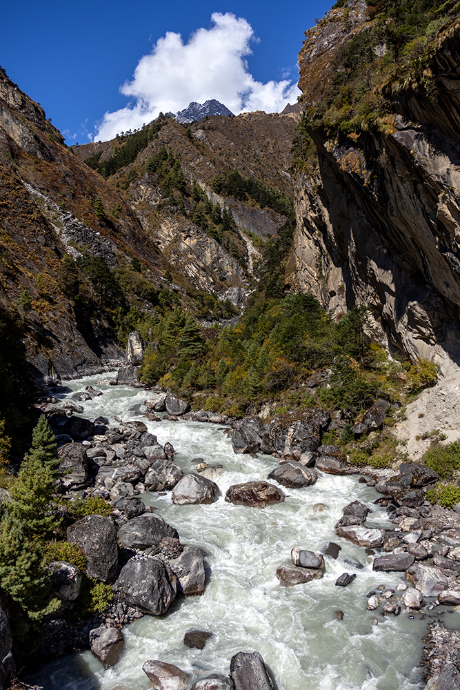 It was a perfectly sunny day yet again, and it didn’t take long for us to reach Tengboche, where we’d spent a peaceful evening on our way to Base Camp. From there, we descended all the way down to the Dudh Koshi River, stopped for lunch at the same riverside restaurant we’d eaten at before, then trekked all the way back up the other side of the river bank. We still had to stop for frequent water breaks because it was so hot out, but now the hill felt no more difficult than it would at sea level.